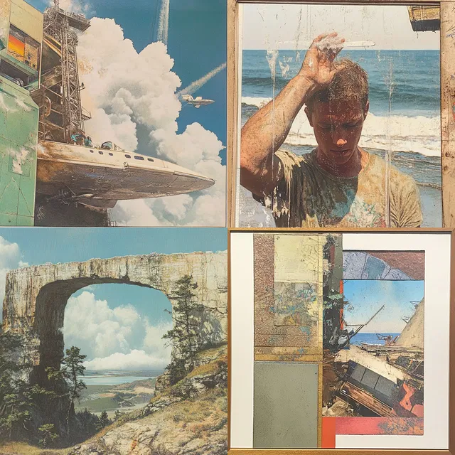 Ностальгическое тепло пронизывает этот стиль, для которого характерны фактурный реализм и многослойность. Приглушённые тона и винтажные оттенки напоминают о середине века, сочетая ретрофутуризм с американским реализмом. Архитектурные сооружения и механические формы изображены с детальной проработкой и сложным наложением слоёв, создавая гармоничный баланс между прошлым и настоящим.