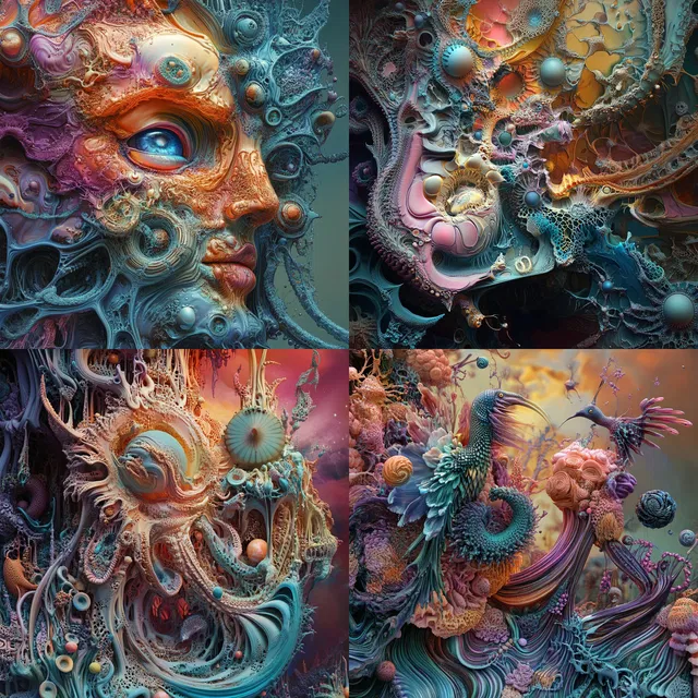 Этот стиль завораживает своей сложной и детальной проработкой. Он пленяет яркой, насыщенной палитрой и тщательно проработанными текстурами. Органичные и плавные формы создают сюрреалистичную, сказочную атмосферу, напоминающую визионерское искусство и психоделические направления.