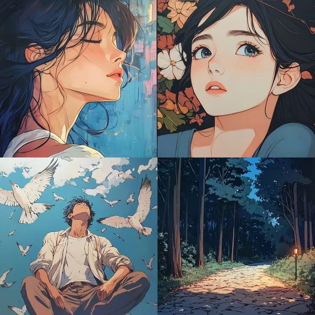 «Vivid Imaginarium» очаровывает динамичными композициями и яркими цветовыми палитрами, сочетая смелые линии с выразительными деталями. Стиль отлично передаёт человеческие фигуры и городские пейзажи, часто сопоставляя их с элементами природы и футуристической архитектуры. Мягкие градиенты и замысловатые узоры усиливают визуальное повествование, создавая гармоничный баланс между реализмом и стилизацией.