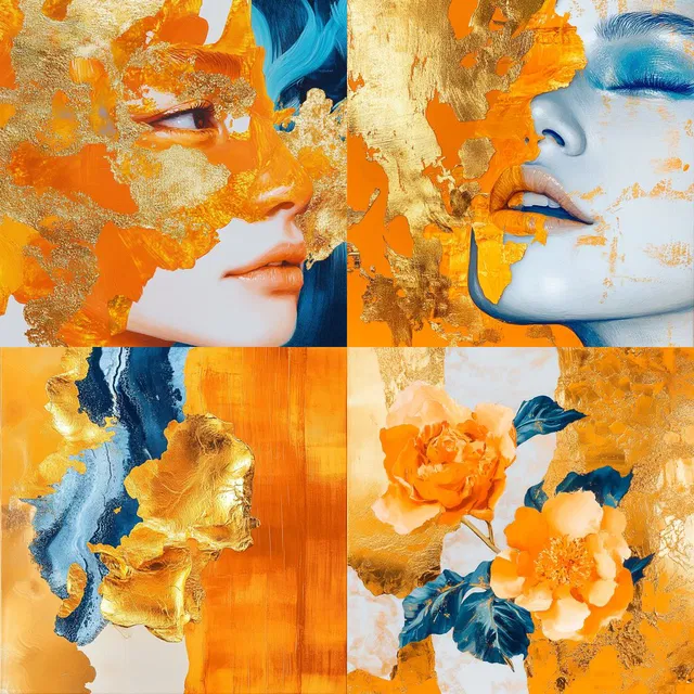 Vibrant Fusion Aesthetics завораживает смелым использованием цвета и динамичными композициями. Яркие оранжевые, насыщенные синие и золотые акценты создают поразительный визуальный эффект.