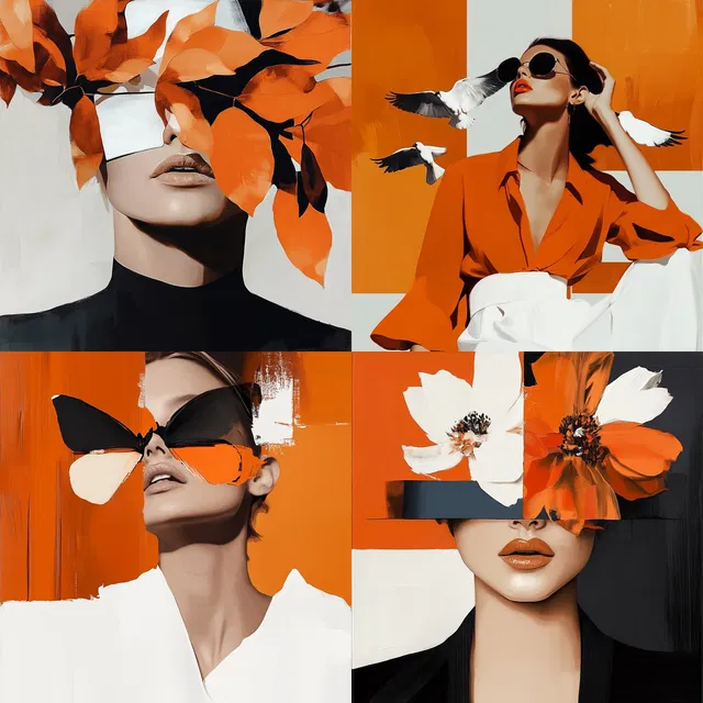 Для этого стиля характерны яркие контрасты и динамичные композиции. Он отличается смелыми формами и графической насыщенностью. Использование яркого оранжевого, насыщенного чёрного и чистого белого цветов создаёт поразительные визуальные сопоставления. Игривая элегантность и гармоничный баланс добавляют глубины.