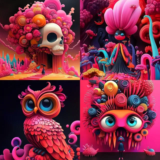 Стиль «яркая сюрреалистическая фантазия» очаровывает своей насыщенной палитрой и сюрреалистичными формами, создавая сказочные и игривые композиции. Яркие контуры и динамичные узоры наполняют энергией, а многослойные текстуры добавляют глубины. Этот стиль прекрасно подходит для изображения причудливых, воображаемых миров, хотя его интенсивная насыщенность может перегрузить более сдержанные темы. Он идеально подходит для фэнтези и современного искусства, но может не подойти для реализма и тонкой проработки деталей.