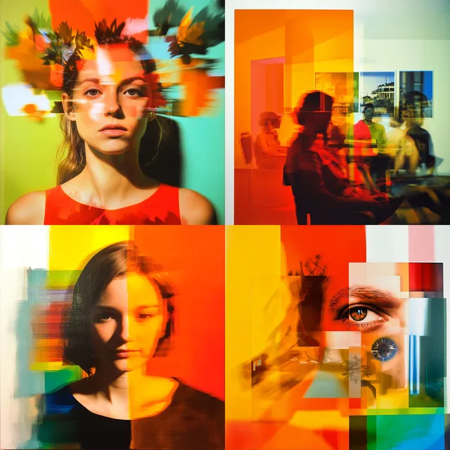 Этот стиль отличает поразительное сочетание ярких цветов и многослойных композиций, создающее динамичный и сюрреалистичный визуальный опыт. Использование размытых переходов и наложения элементов вызывает ощущение движения и энергии, напоминая абстрактный экспрессионизм и футуризм.