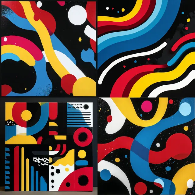 Преобладает яркая геометрическая абстракция с использованием насыщенных основных цветов и высокого контраста, что определяет визуальный язык стиля. В графическом дизайне этот стиль выделяется благодаря плоским цветам и динамичным композициям, которые напоминают о модернистских художественных течениях. Геометрические формы и абстрактные образы создают игривую, но насыщенную атмосферу, подходящую для брендинга и редакционных иллюстраций.