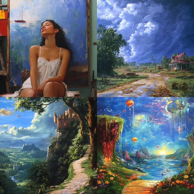 Этот стиль характеризуется яркими красками и пышными пейзажами, которые создают сказочную атмосферу. Живописные техники и детальная проработка элементов придают работам сюрреалистичное, мистическое звучание, часто напоминающее модерн и романтизм.