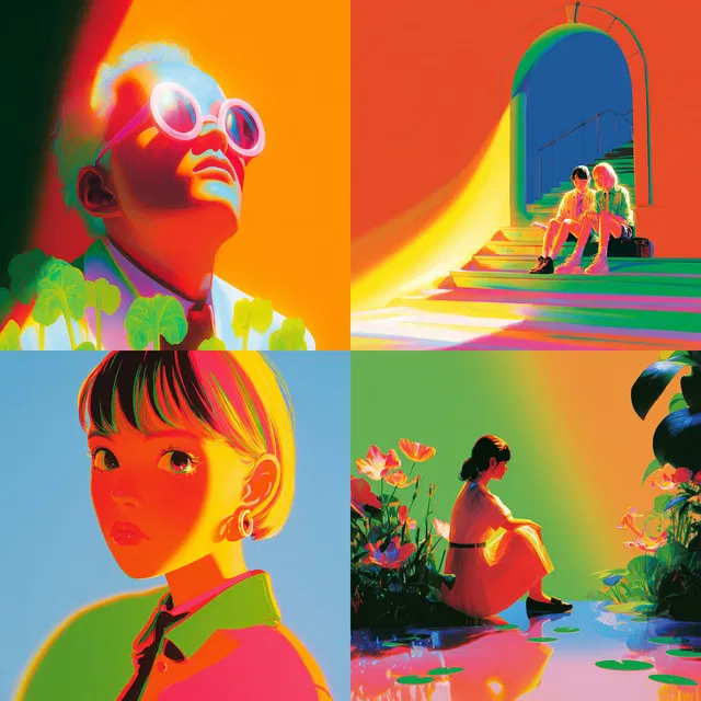 Этот стиль определяют взрывные цвета и сияющий свет, создавая яркий визуальный язык, который балансирует между игривой причудливостью и смелой современностью. В нём преобладают яркие неоновые оттенки и глянцевые текстуры, которые формируют атмосферу праздника, одновременно футуристическую и по-своему ретро.
