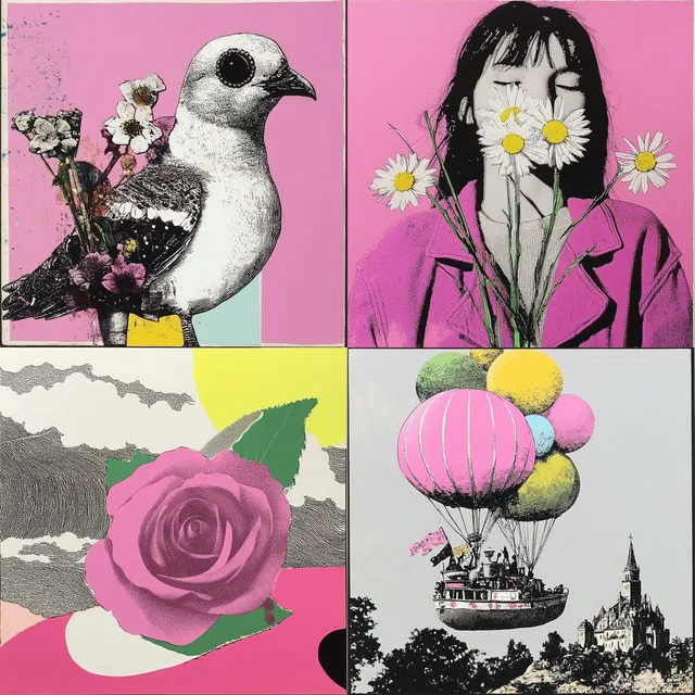 Стиль Vibrant Pop Fusion объединяет влияние поп-арта с дерзким графическим подходом. Для него характерны доминирующие розовые оттенки и высокая контрастность. Этот стиль создаёт игривые современные визуалы с культурными комментариями. Часто используются повторяющиеся узоры и контрастные элементы.