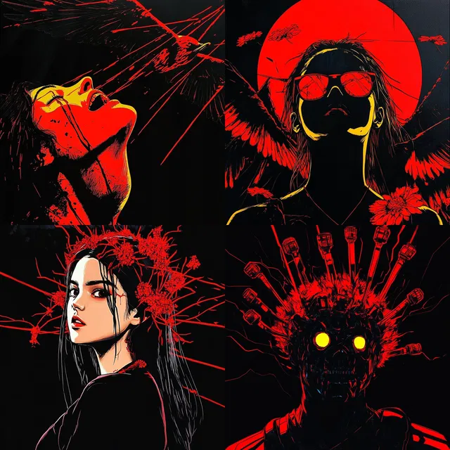 Видно влияние поп-арта и неоэкспрессионизма, что придаёт современный оттенок городским и футуристическим темам. Этот стиль отлично подходит для научно-фантастических сюжетов и культурных комментариев, но может испытывать трудности с фотореализмом и сложными деталями.
