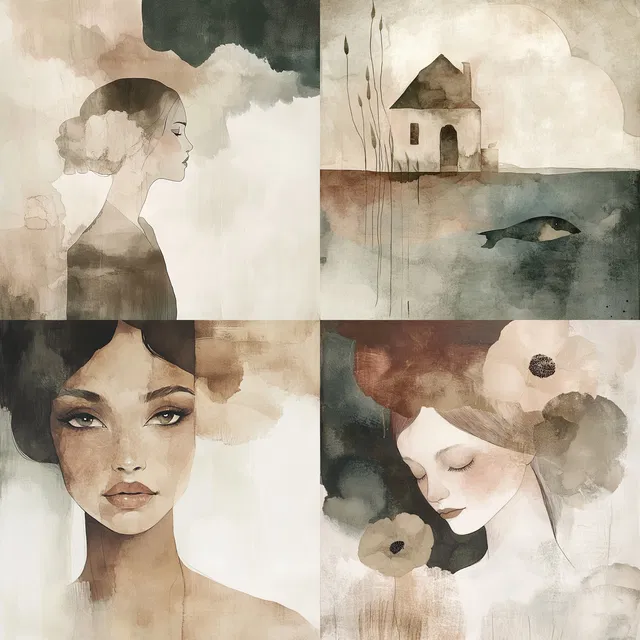 Идеально подходит для обложек книг, оформления альбомов и редакционных разворотов, где нужна спокойная и мистическая эстетика.