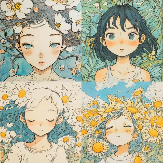 Этот стиль отличается изящными линиями и мягкими, напоминающими акварель, оттенками, которые создают причудливую и сказочную атмосферу. Использование нежных пастельных тонов и лёгких контуров усиливает ощущение игривости и ностальгии, напоминая как современные мангу, так и классическую иллюстрацию.