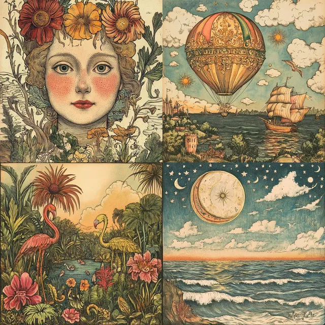 Хотя стиль отлично подходит для декоративных и иллюстративных целей, его сложность может затмить минималистичные или фотореалистичные решения. Он идеально подходит для книжной иллюстрации, модного дизайна и брендинга — там, где главное — изысканные и детализированные визуальные образы.