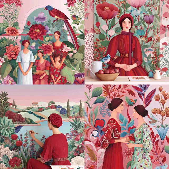 Этот стиль отлично подходит для иллюстративного повествования, дизайна одежды и редакционной иллюстрации, а также может быть использован в брендинге и детских книгах. Однако его акцент на декоративных элементах может ограничивать применение в фотореалистичном или минималистичном стилях, предпочитая богатые текстуры и яркие палитры утончённости.