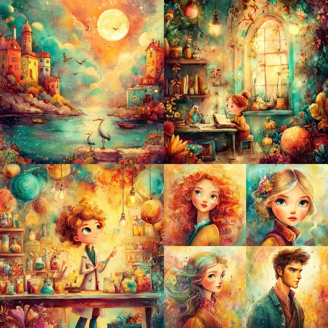 Стиль отлично подходит для изображения выразительных персонажей и пышных пейзажей. Он черпает вдохновение в иллюстрациях из книг и традициях народного искусства. Живописные качества и импрессионистская манера письма вызывают чувство ностальгии и удивления.