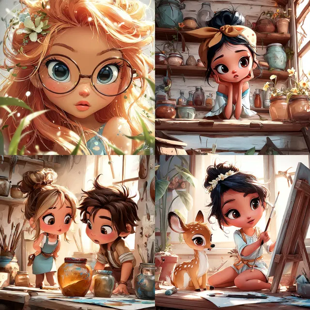 Этот стиль очаровывает своей причудливой прелестью, игривой эстетикой и чарующей атмосферой. Мягкое освещение и пастельные тона создают сказочную атмосферу, а выразительные глаза и детализированные черты оживляют персонажей. Преобладают органические формы и естественные образы, придающие композициям гармоничное течение.