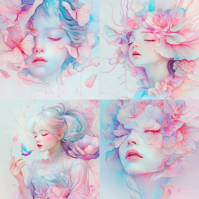 Этот стиль очаровывает своей воздушностью и сказочностью. Он использует пастельные градиенты и мягкие переходы, создавая причудливую и сюрреалистичную атмосферу. Здесь преобладают органические формы и плавные линии, придающие каждой композиции изящество и очарование.