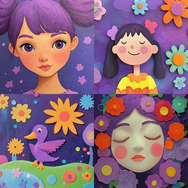 Этот стиль отличает использование ярких цветов и игривых композиций. Для него характерны чёткие контуры и упрощённые формы. Применение насыщенных палитр и мягких градиентов создаёт причудливую, детскую атмосферу, напоминающую современный поп-арт и наивное искусство.