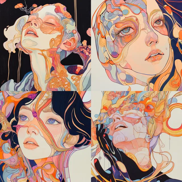 Сюрреализм и модерн сливаются в едином стиле, для которого характерны плавные формы, замысловатая графика и воздушные цветовые палитры. Яркие пастельные тона и смелые контрасты создают сказочную атмосферу, а органические формы и динамичные композиции пробуждают чувство чуда и фантазии.
