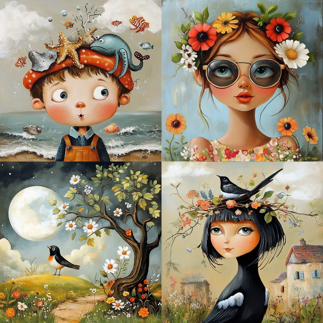 Причудливый и чарующий стиль пленяет своей игривостью и сюрреалистичностью. Мягкие текстуры и плавные изгибы создают атмосферу мечты, а пастельные тона и тёплые оттенки вызывают ностальгию и ощущение уюта.
