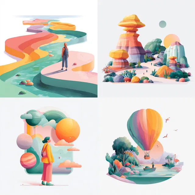 Яркие цвета и геометрические формы определяют этот стиль, создавая причудливую и игривую атмосферу. Мягкие пастельные оттенки и многослойные текстуры придают сказочность, в то время как изометрические перспективы и угловатые формы добавляют современности. Этот стиль превосходно подходит для создания радостных, фантазийных сцен, идеально подходящих для детских книг и образовательных материалов. Однако в контексте фотореализма ему может не хватать глубины, он больше склоняется к иллюстрации, чем к реализму. Он идеально подходит для брендинга и рекламы, привлекая внимание своим ярким и красочным подходом, хотя может быть менее эффективен при работе с более тонкими или нюансированными темами.
