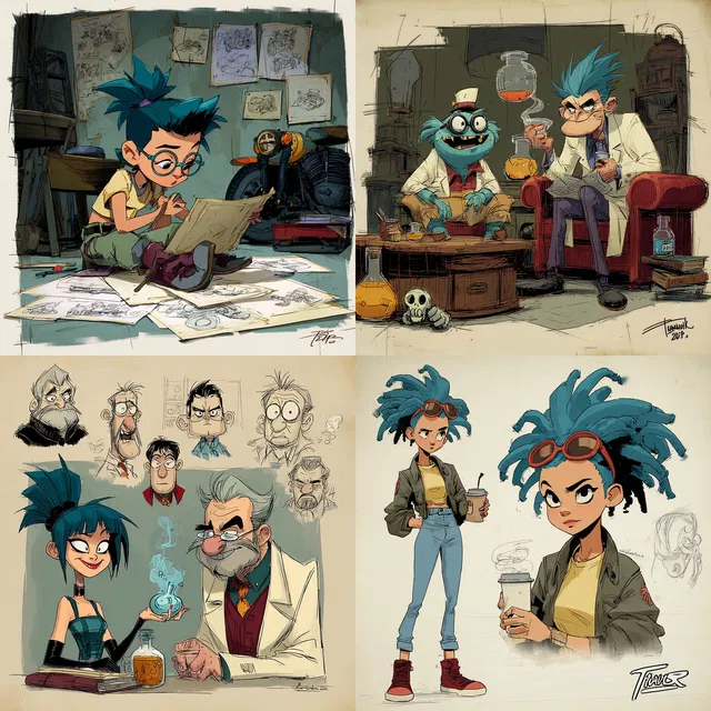Его сильные стороны — графические романы, анимация и концепт-арт, где его смелые контуры и яркие цвета могут раскрыться в полной мере.