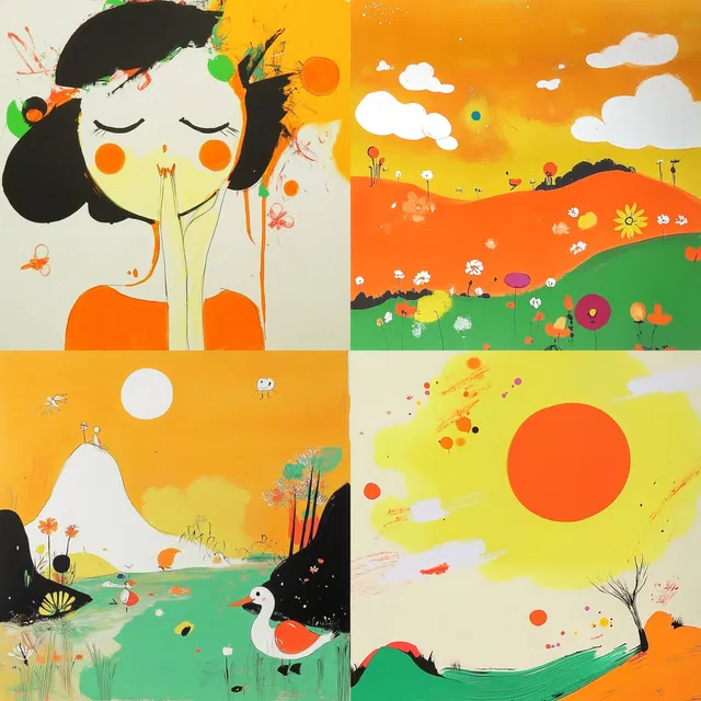 Вивид Вимзи очаровывает своей игривой абстракцией и ярким минимализмом, создавая мир радостного упрощения. В этом стиле используются насыщенные цвета и упрощённые формы, чтобы вызвать детское удивление и побудить к творческой игре.