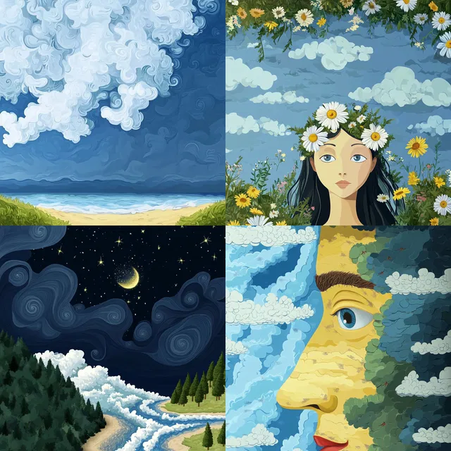 В целом, этот стиль предлагает богатое визуальное повествование, особенно выделяясь в тех областях, где творчество и природа пересекаются.