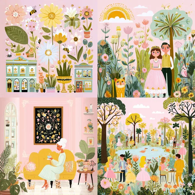 Этот стиль идеально подходит для детских книг, поздравительных открыток и домашнего декора. Он очаровывает своим радостным духом и чарующими визуальными образами.