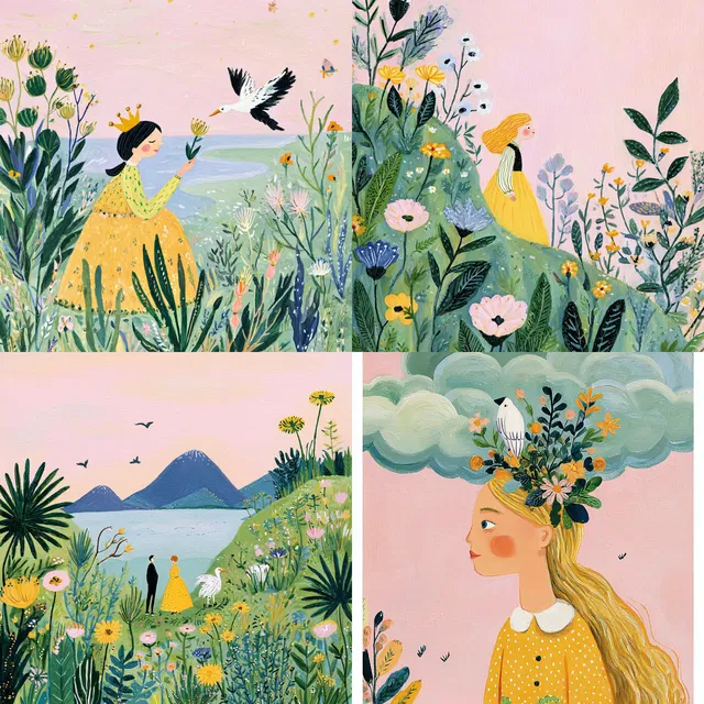 Он идеально подходит для детских книг, декоративного искусства и причудливого брендинга. Этот стиль предлагает восхитительный побег в мир воображения и простоты.