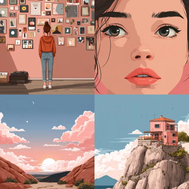 Этот стиль очаровывает своей причудливой иллюстрацией и очарованием повествования. Он привлекает пастельной палитрой и игривыми композициями. Акцент на мягких цветах и чётких линиях вызывает чувство ностальгии и волшебства, напоминая классические сборники рассказов и анимацию середины XX века.