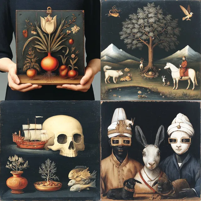 Этот стиль отличается богатством деталей и тщательной проработкой. В нём гармонично сочетаются элементы Ренессанса и сюрреализма, создавая уникальное визуальное повествование, одновременно очаровательное и заставляющее задуматься.