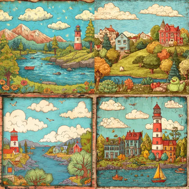 Яркие цветовые палитры и причудливые мультяшные контуры определяют этот стиль, вызывая чувство ностальгии и игривости. Ручные текстуры и эффекты винтажной бумаги усиливают его ретрошарм, что делает его идеальным для детских книг и декоративных принтов. Хотя его сила заключается в создании радостных и творческих сцен, ему может не хватать точности, необходимой для фотореалистичных или узкоспециализированных приложений. Этот стиль превосходно передаёт культурное наследие и фэнтези, предлагая уникальное сочетание прошлого и игривых инноваций.