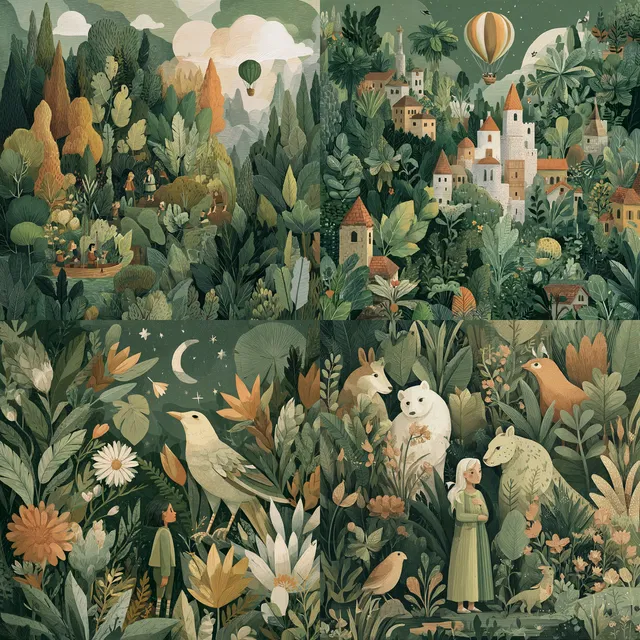 Хотя этот стиль особенно хорош в повествовательных контекстах, таких как детские книги и экологические кампании, его живописный подход может не обладать точностью, необходимой для фотореалистичных или узкоспециализированных задач. Тем не менее, его очаровательные зелёные образы создают захватывающий визуальный опыт, который идеально подходит для проектов, стремящихся вызвать чувство удивления и связи с природой.