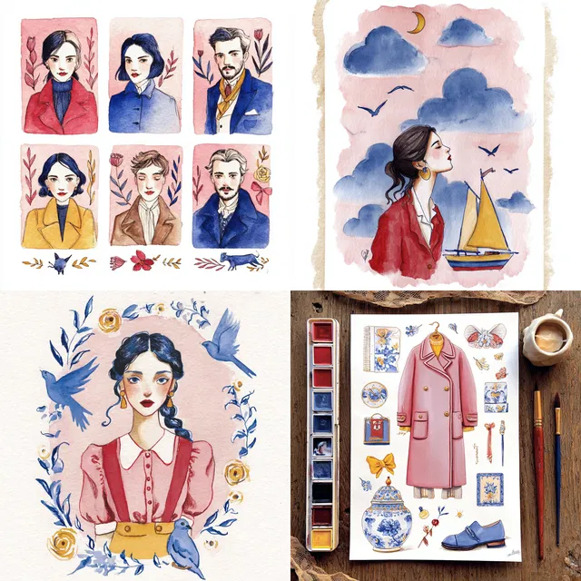 Этот стиль очаровывает своей мягкостью и сказочностью. Техника акварельной живописи и пастельная палитра вызывают чувство ностальгии и волшебства. Выразительные лица и очаровательные персонажи населяют сюрреалистические и фантазийные миры, сочетая элементы импрессионизма и модерна.