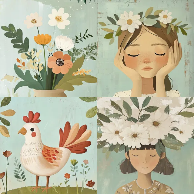 Этот стиль идеально подходит для детских книг, поздравительных открыток и текстильных узоров. Его сильные стороны заключаются в способности вызывать ностальгию и невинность, хотя он может не полностью соответствовать точности, требуемой в технических или фотореалистичных приложениях.