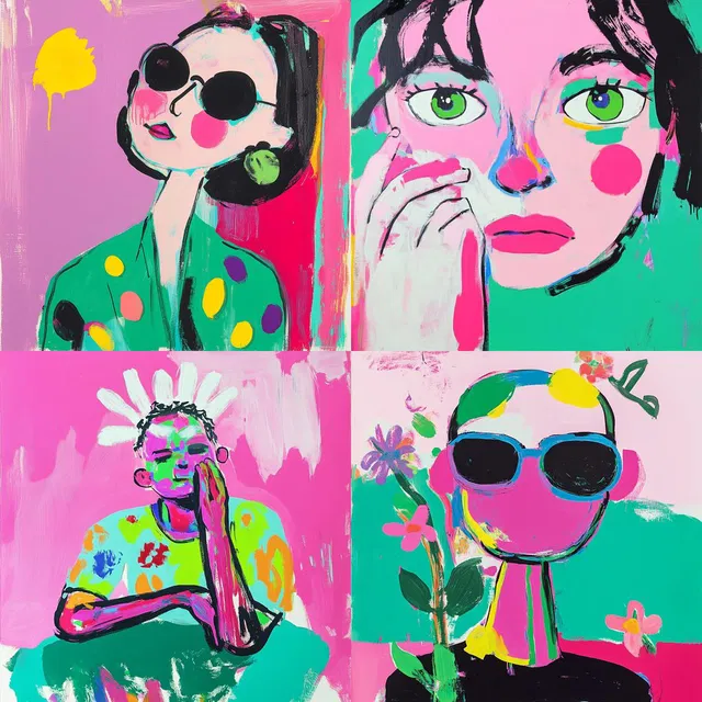 Яркая цветовая палитра и выразительные мазки кисти определяют стиль, создавая причудливое и энергичное настроение. Смелые графические элементы и игривые композиции напоминают поп-арт и сюрреализм. Хотя этот стиль превосходно подходит для создания ярких и творческих изображений, ему не хватает тонкости в фотореалистичных контекстах. Поэтому он идеально подходит для современных креативных проектов, но менее подходит для традиционного реализма.