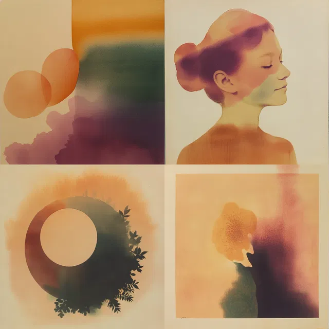 В этом стиле преобладают эфемерные градиенты и мягкие переходы, которые создают атмосферу мечты в различных визуальных контекстах. Акцент на силуэтах и игра теней усиливают ощущение чего-то неземного, а тёплая, земная палитра добавляет глубины и спокойствия. Органичные формы и плавные контуры вызывают чувство умиротворения, гармонично вписываясь в каждую композицию.