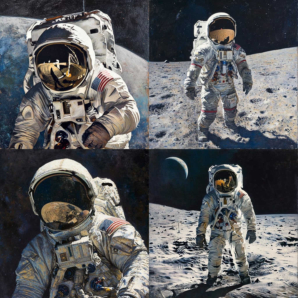 Алан Бин использует различные техники и материалы, чтобы передать красоту и величие космоса. Его работы сочетают в себе научные знания и художественное видение, что позволяет создавать уникальные и запоминающиеся произведения.