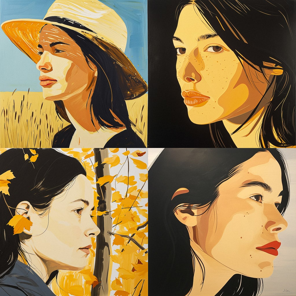 Алекс Кац — известный американский художник, работающий в жанре фигуративной живописи. Его стиль отличается яркими цветами, простыми формами и лаконичностью образов. Кац создаёт портреты и фигуры людей, передавая их суть через выразительные силуэты и чёткие контуры.