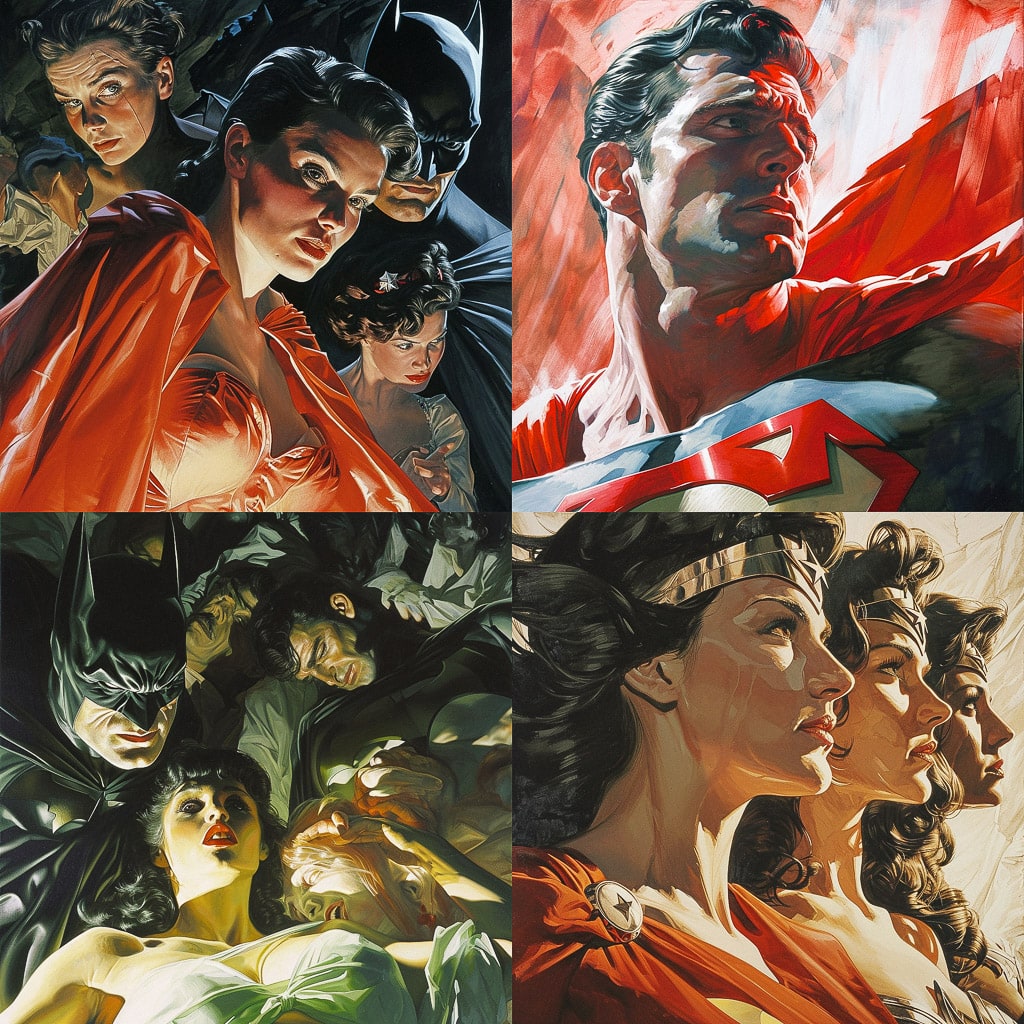 Художник уделяет особое внимание проработке характеров героев, их эмоций и поз. Это позволяет передать не только внешний облик персонажей, но и их внутренний мир. Работы Алекса Росса отличаются динамичностью и насыщенностью цвета, что делает их особенно привлекательными для поклонников комиксов.