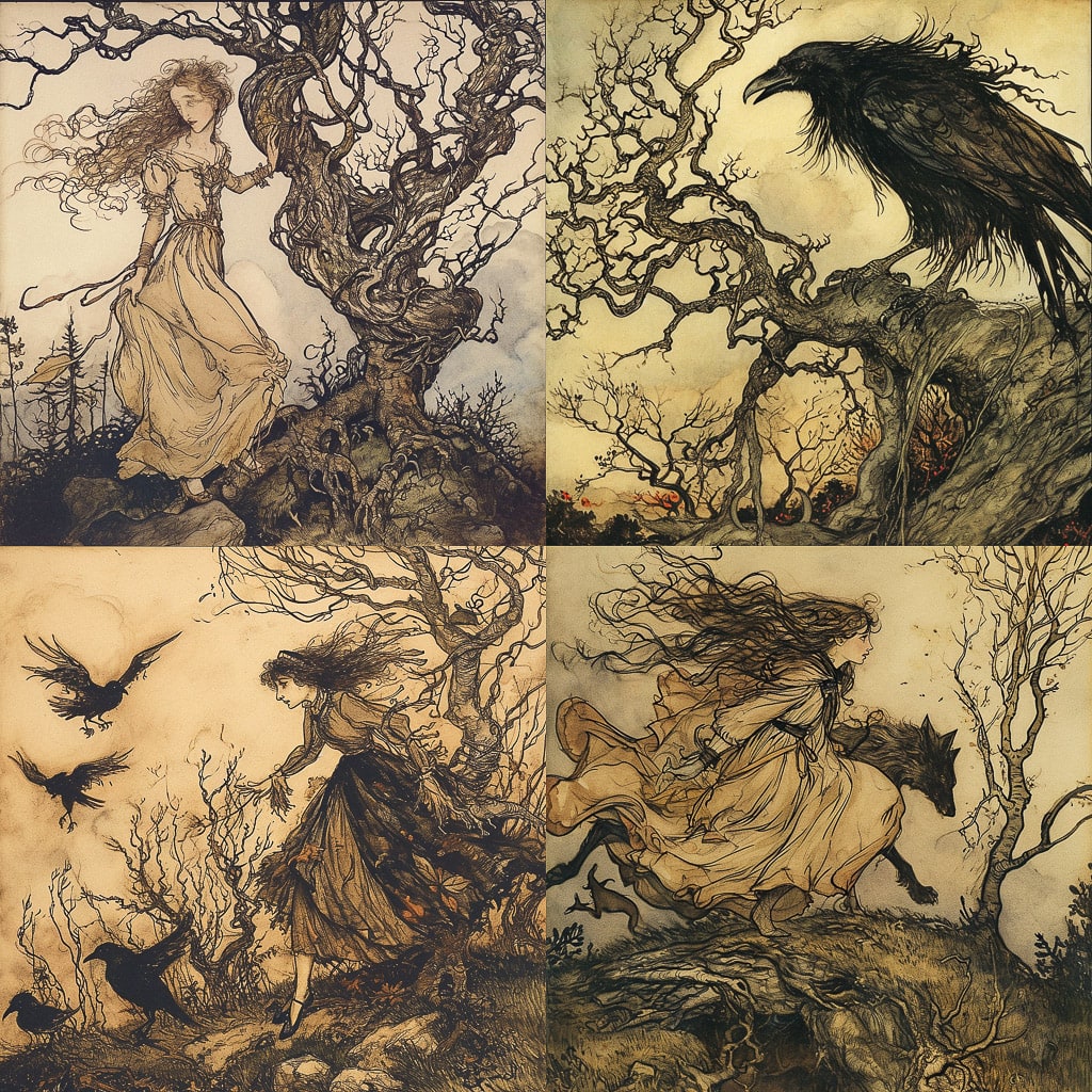 В работах Рэкхема можно увидеть влияние символизма и декоративно-прикладного искусства. Его иллюстрации наполнены мистикой и волшебством, что делает их особенно привлекательными для любителей фэнтези и сказок.