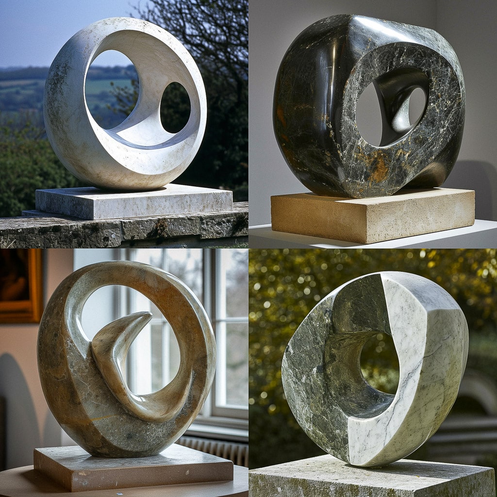 Её работы отличаются простотой и лаконичностью, они часто имеют органичные, природные формы. Хепворт стремилась передать ощущение пространства и объёма, используя выразительные силуэты и объёмы. Её скульптуры могут вызывать у зрителя глубокие эмоциональные переживания, побуждая к размышлениям о природе и человеческом существовании.