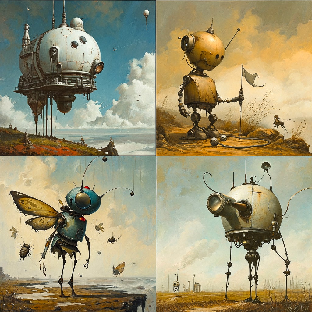 Художник использует различные техники, включая живопись и коллаж, чтобы передать свои идеи и эмоции. Его работы часто вызывают размышления о природе реальности и восприятии мира.
