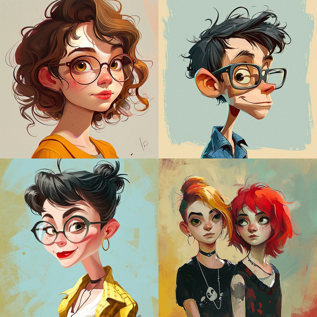 Основные черты мультяшного стиля: * Упрощённые формы и линии. Персонажи и объекты в этом стиле имеют упрощённые формы, что делает их более выразительными и узнаваемыми. * Яркие цвета. Мультяшный стиль отличается насыщенными и яркими цветами, которые создают атмосферу веселья и радости. * Выразительные эмоции. Персонажи в этом стиле часто выражают сильные эмоции, что делает их более живыми и интересными. * Динамичные позы и жесты. Мультяшные персонажи часто находятся в динамичных позах, что придаёт им энергию и движение. * Игривый и юмористический характер. Мультяшный стиль часто используется для создания юмористических и игривых образов, которые вызывают улыбку и радость у зрителей.