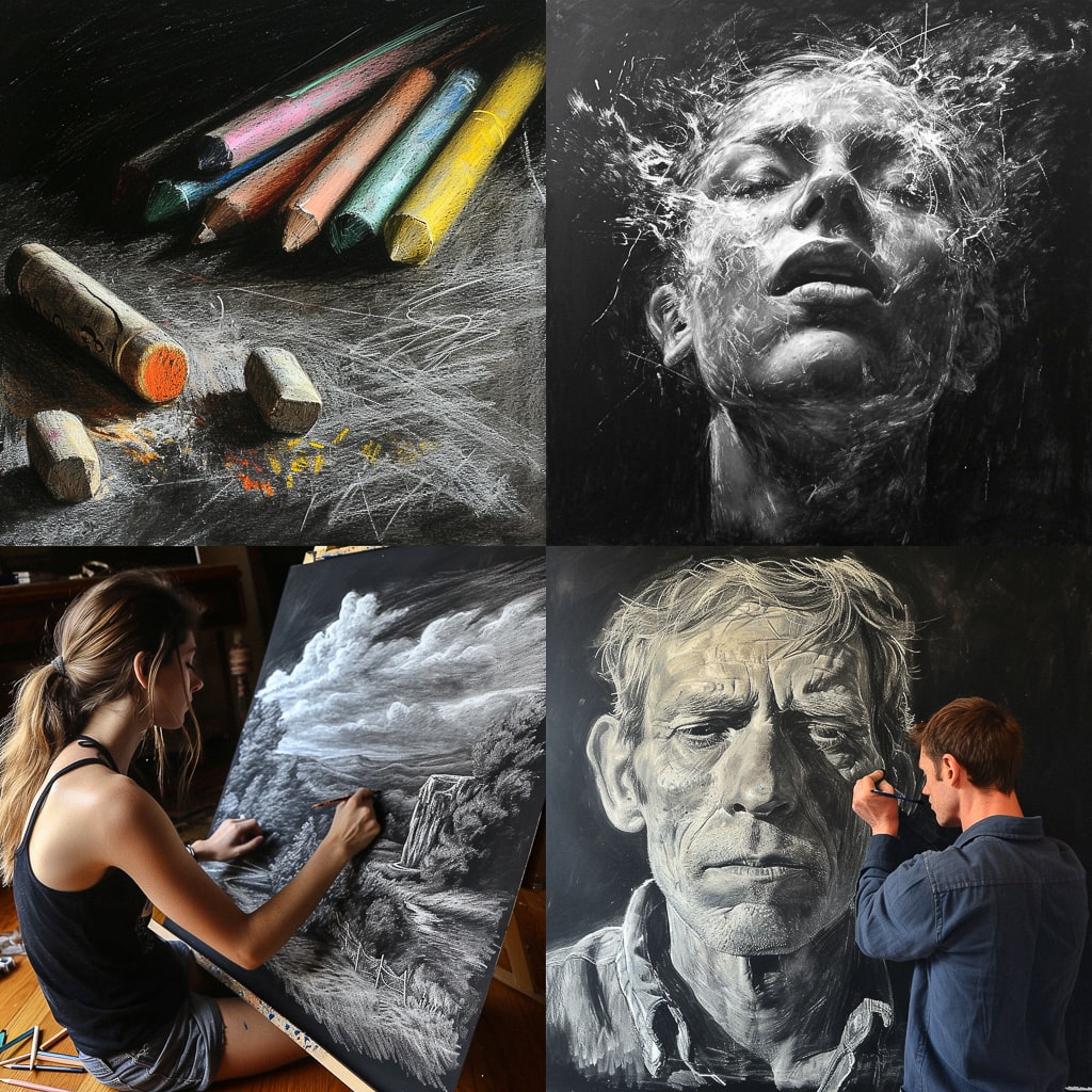 Художники, работающие в этой технике, могут создавать как детальные и проработанные композиции, так и более свободные и экспрессивные работы. Chalk drawing подходит для различных жанров, включая пейзаж, портрет и натюрморт. Эта техника позволяет художнику экспериментировать с текстурами и цветами, придавая каждому произведению индивидуальность и уникальность.
