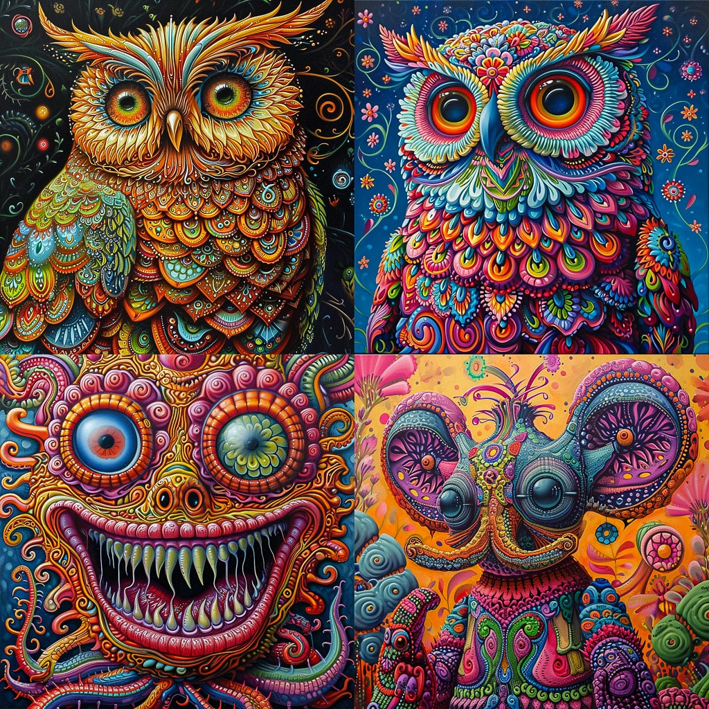 Художник использует технику многослойной живописи, что позволяет ему создавать насыщенные и глубокие цвета. В работах Криса можно увидеть влияние как классического искусства, так и современных тенденций.