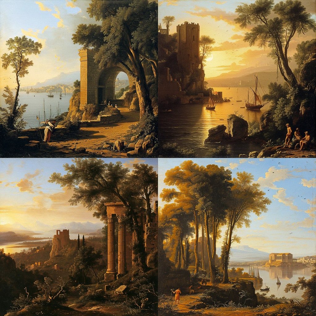 Клод Лоррен — один из наиболее известных французских художников XVII века, мастер пейзажной живописи. Его работы отличаются гармоничным сочетанием света и тени, вниманием к деталям и умением передать атмосферу античности и идиллической природы.