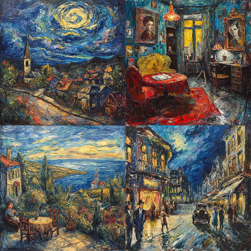 Художник уделял особое внимание визуальному воздействию своих произведений, экспериментируя с композицией и перспективой. Его работы часто наполнены символикой и метафорами, которые отражают бунтарский дух и стремление к переменам.
