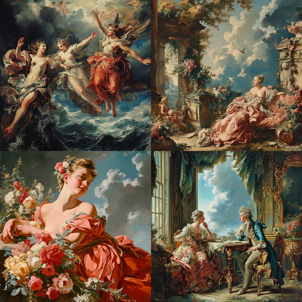 Франсуа Буше (1703–1770) — французский художник, один из ключевых представителей стиля рококо. Его работы отличаются лёгкостью, изяществом и утончённостью. Буше мастерски передавал красоту природы, нежность женских образов и атмосферу праздника.