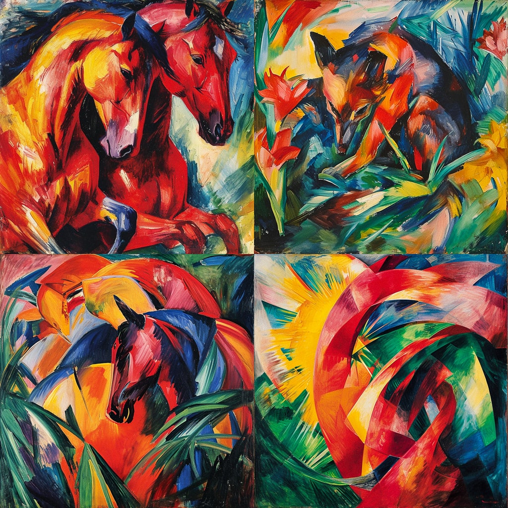 Франц Марк — один из самых ярких представителей немецкого экспрессионизма. Его работы отличаются яркими красками и динамичными формами, которые передают эмоции и чувства художника. Марк стремился выразить в своих картинах гармонию природы и внутреннего мира человека.