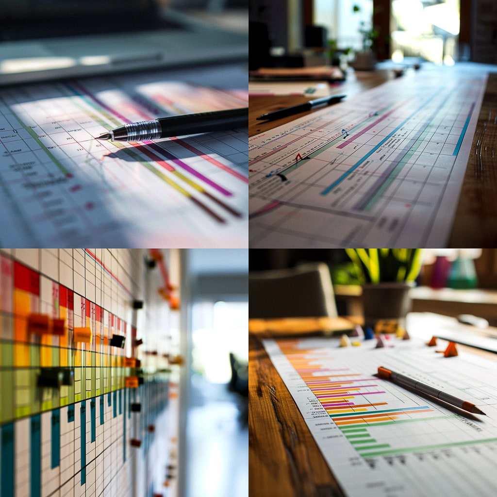 Gantt chart (диаграмма Ганта) — это инструмент для визуализации расписания проекта. Он представляет собой горизонтальную полосу, разделённую на отрезки, каждый из которых соответствует конкретной задаче или этапу работы. На вертикальной оси обычно указываются временные интервалы, а на горизонтальной — список задач.